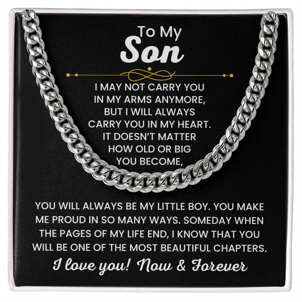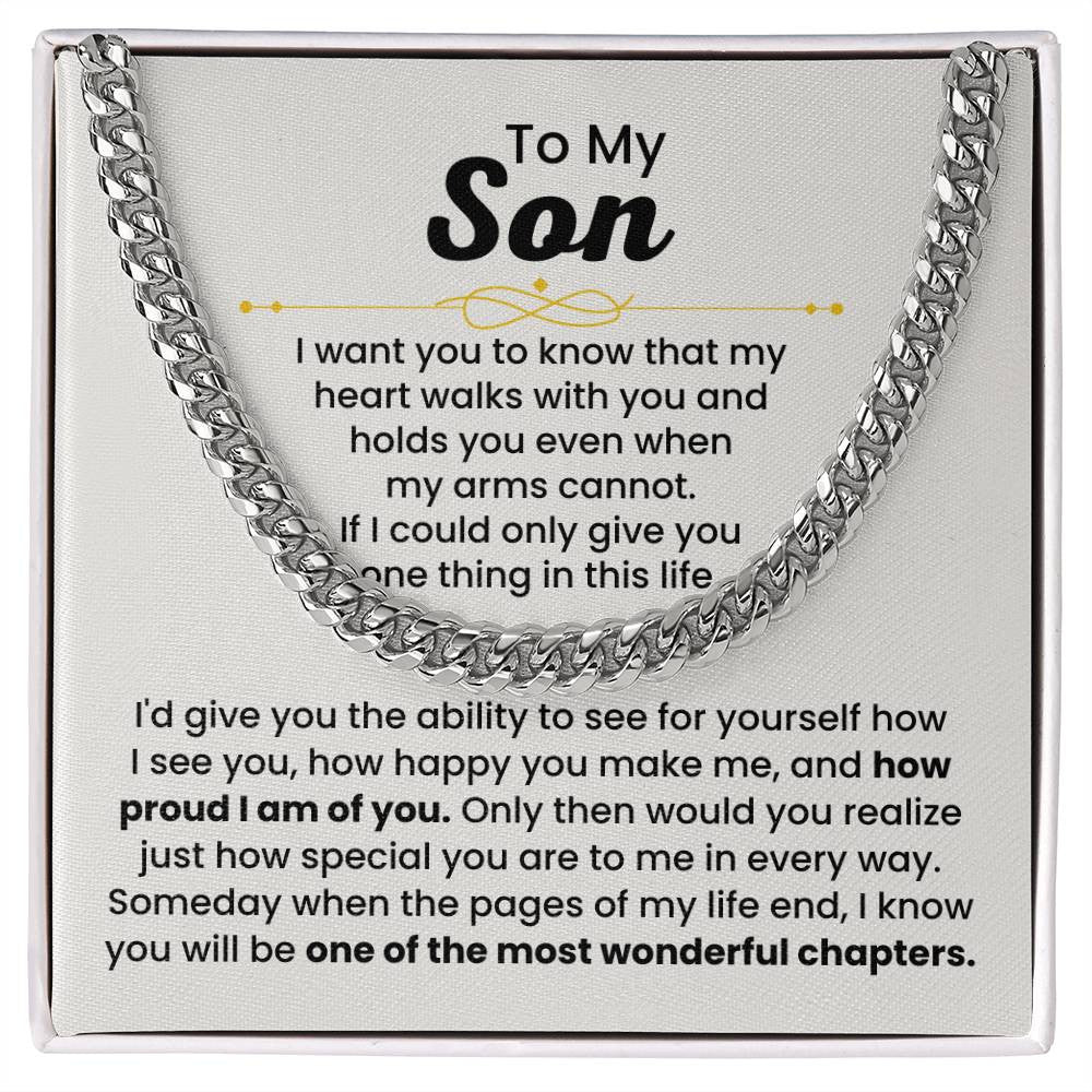 To My Son Necklace - 'Always in My Heart' Cuban Link Chain