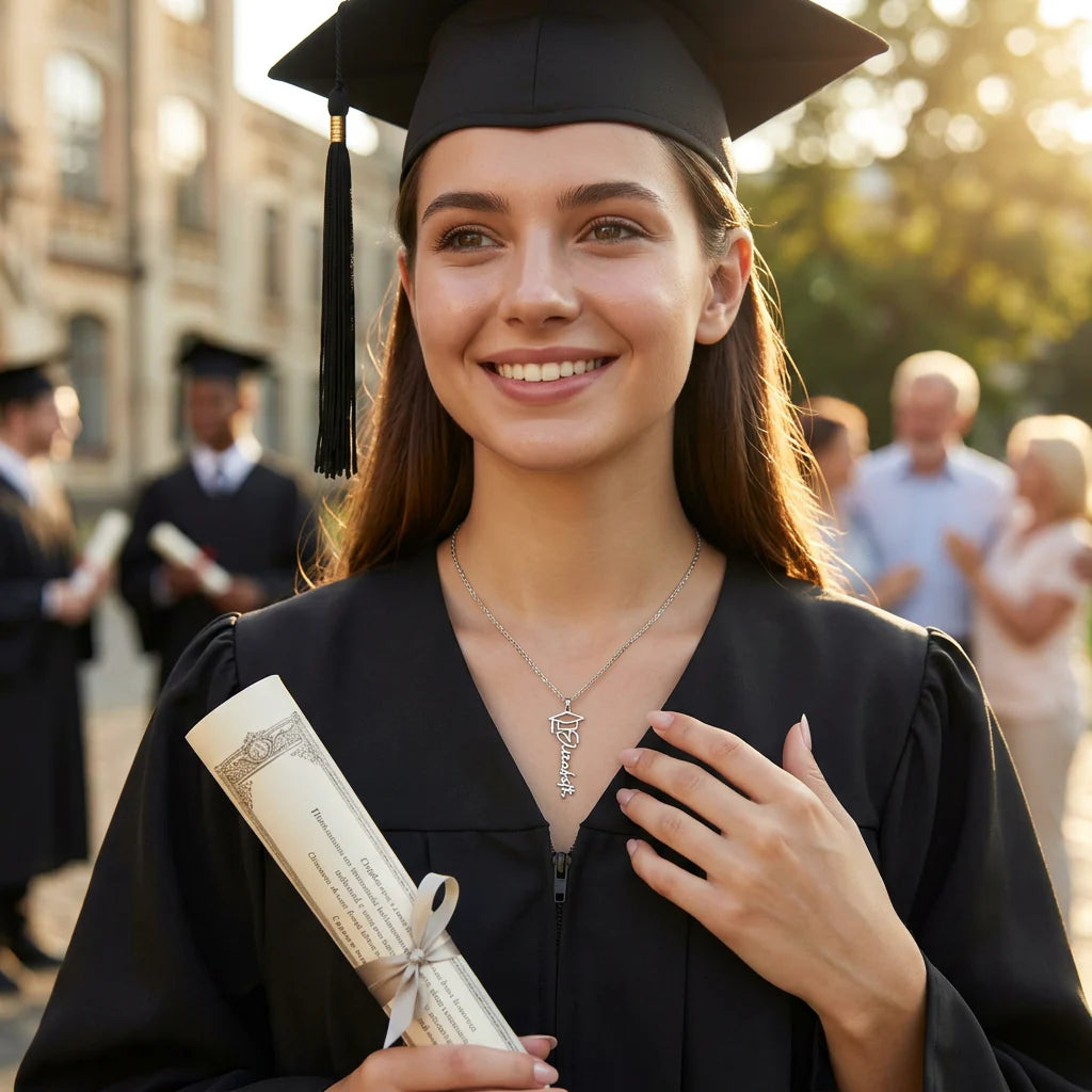 Thoughtfully personalized with the name or word of your choice, this necklace makes an unforgettable graduation gift for high school, college, or beyond. Whether worn on the big day or cherished for years to come, it’s a beautiful reminder of how far they’ve come—and how bright their future is.