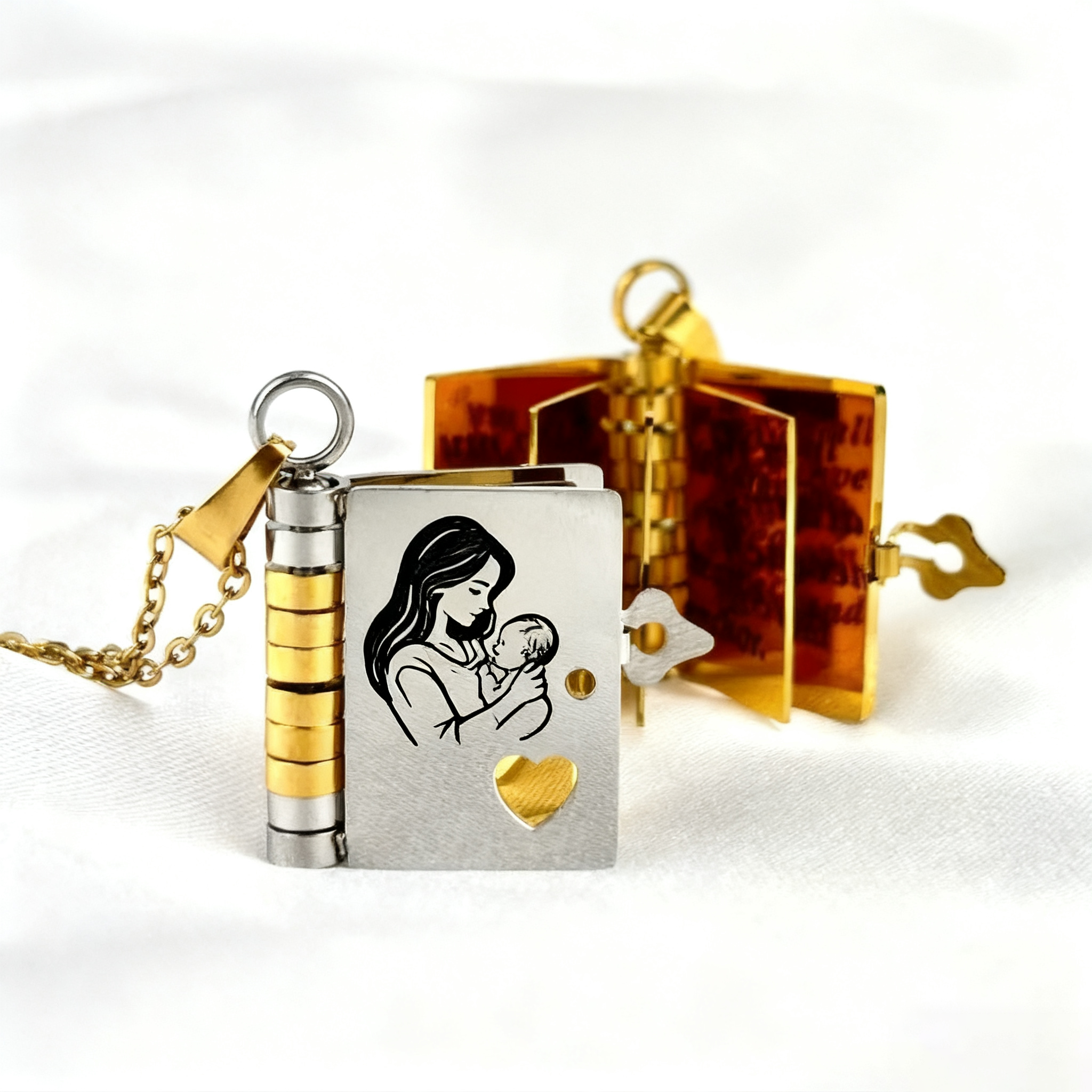 Express your love in a timeless way with our My Perfect Mom Book Necklace - an engraved stainless steel pendant designed to carry your deepest emotions.