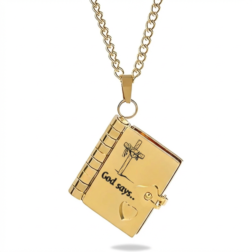 God Says You Are-Faith Book Necklace: This faith necklace is a miniature book shaped pendant engraved with powerful affirmations like "Beautiful", "Victorious", and "Never Alone", each paired with a supporting Bible verse. It constantly reminds people of their identity, strength, and faith, making them become strong and confident in a subtle way