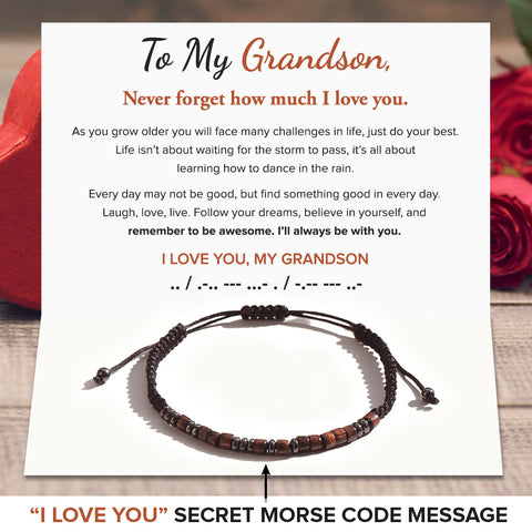 Celebrate the special bond with your grandson through the "I Love You" Morse Code Bracelet. Crafted with care, this bracelet carries an unspoken message of love and connection. The set includes a heartfelt message card, making it a cherished gift. Express your affection in a unique and meaningful way.