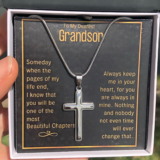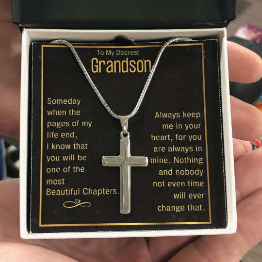 Show your love to your grandson with this beautiful best-selling Grandson Cross Necklace with a heartfelt message: