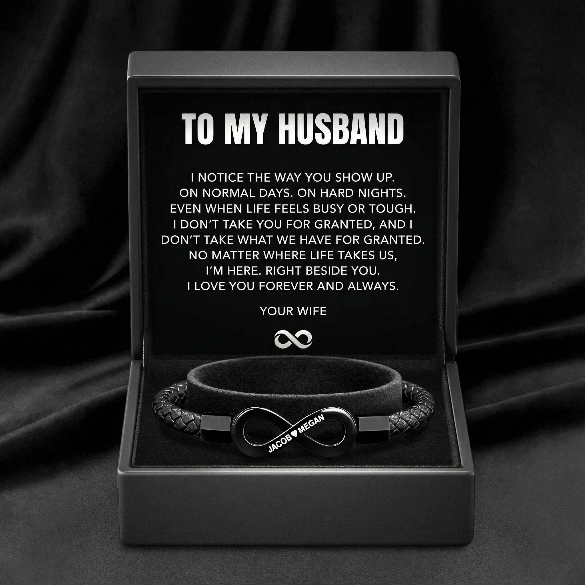 Your names, beautifully engraved on the Infinity Bracelet, are a symbol of your unbreakable bond and the promise of forever.