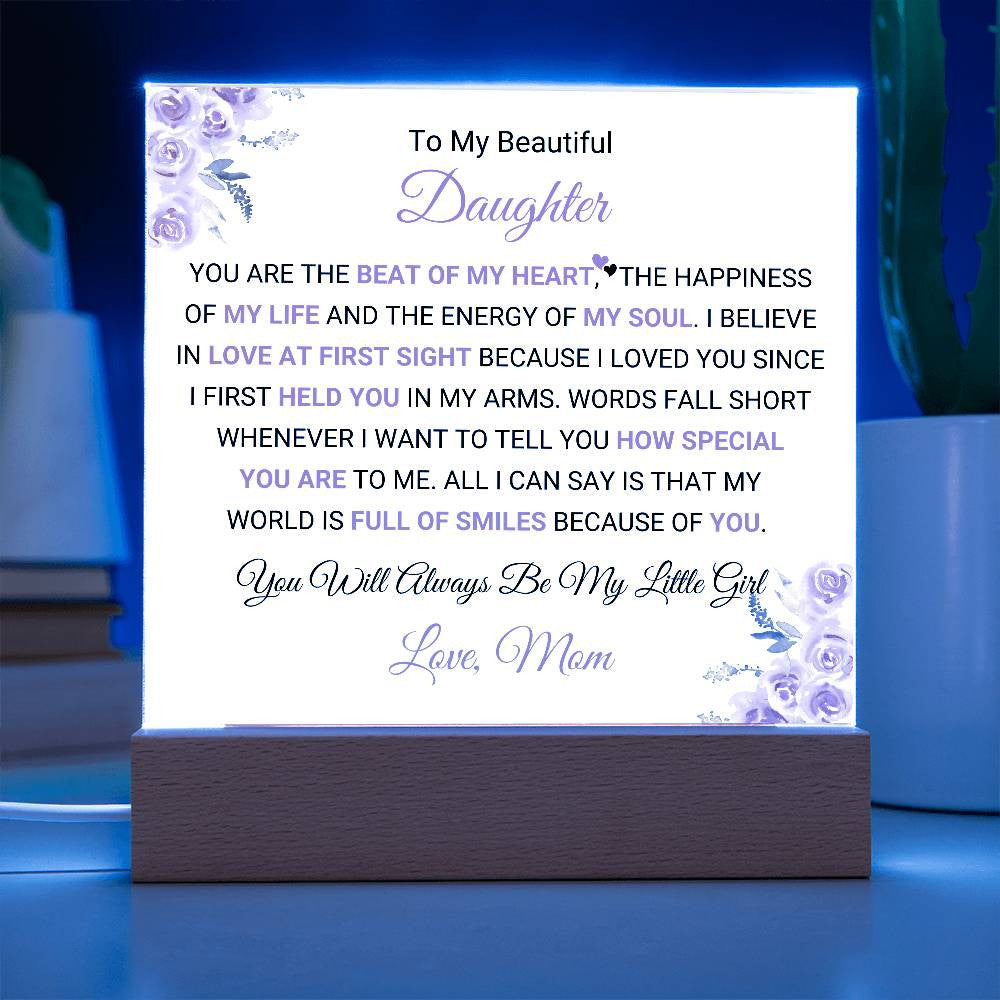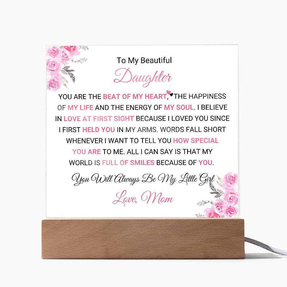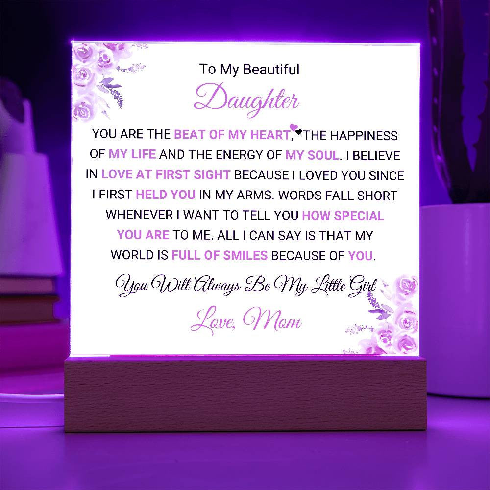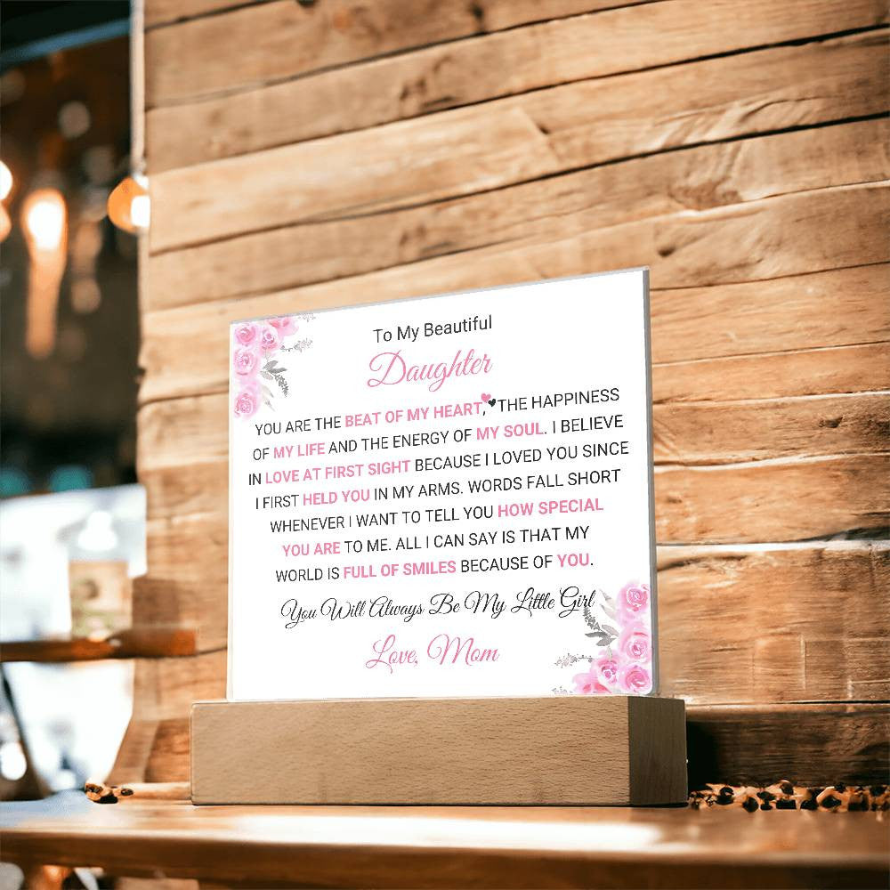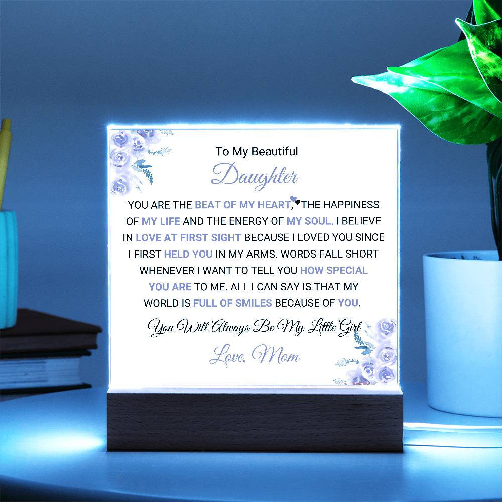 Celebrate the deep and unbreakable bond between a mother and daughter with this beautifully personalized Acrylic Square Plaque. Whether displayed in her bedroom, living room, or any special space, this plaque will remind her of how much she means to you and the joy she brings to your life.