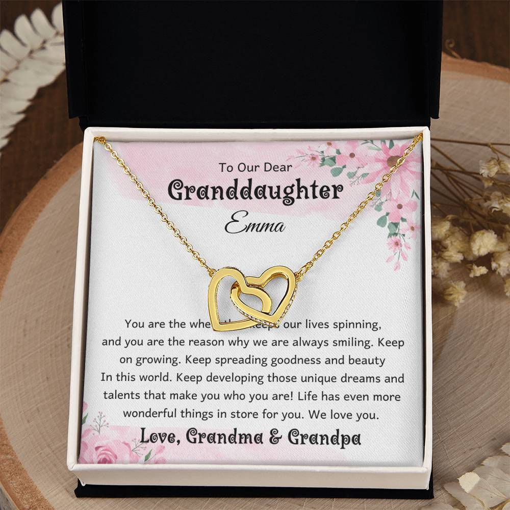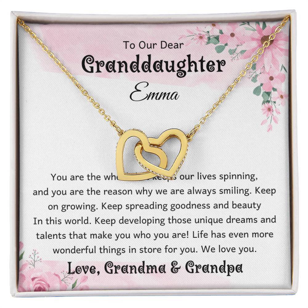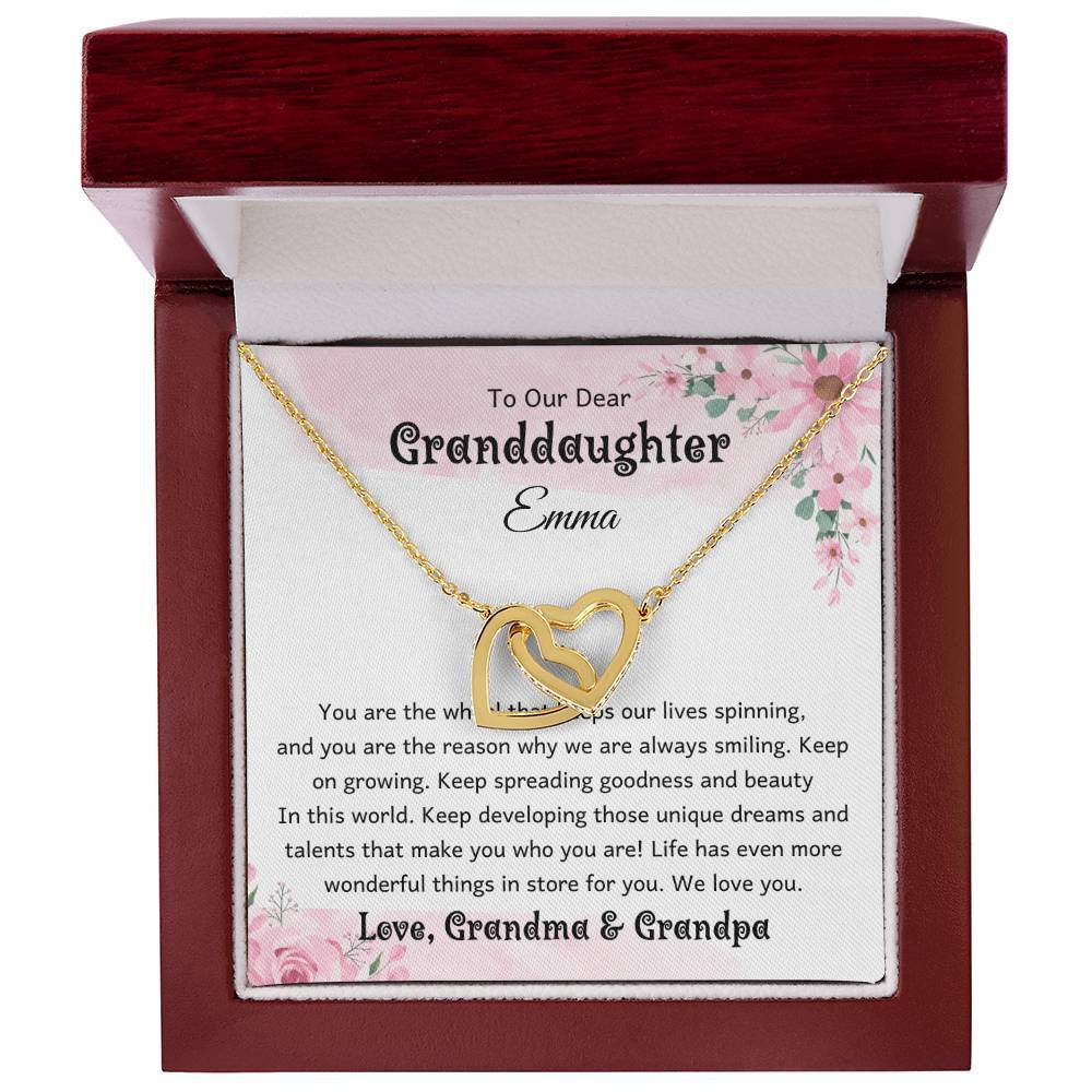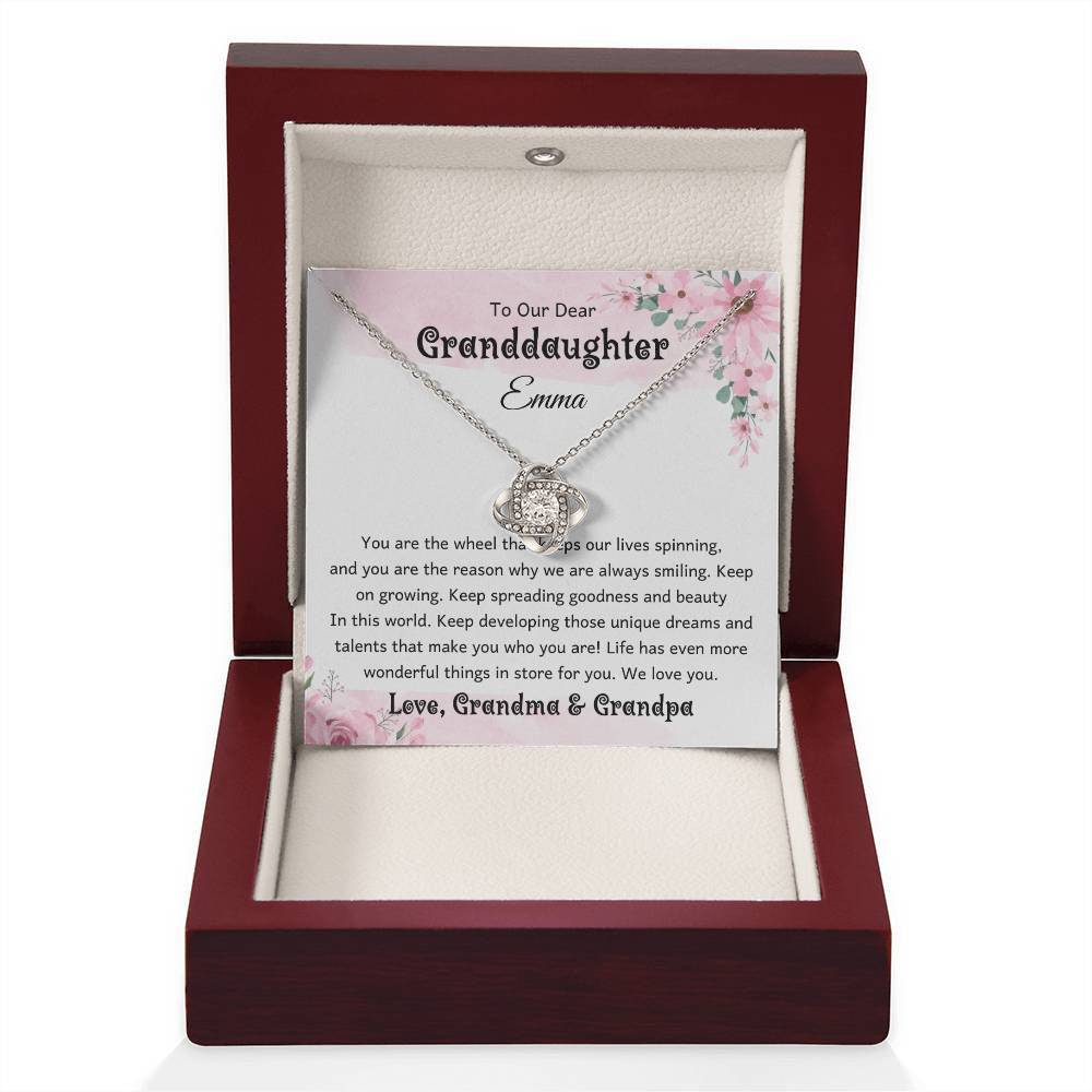 Celebrate the joy your granddaughter brings into your life with this personalized Granddaughter Necklace. Each piece is a heartfelt reminder that she is the light of your lives and that you believe in her endless potential. Whether she’s developing her unique talents or spreading beauty in the world, this necklace will remind her that Grandma and Grandpa are always with her, cheering her on every step of the way.