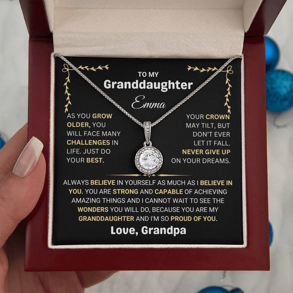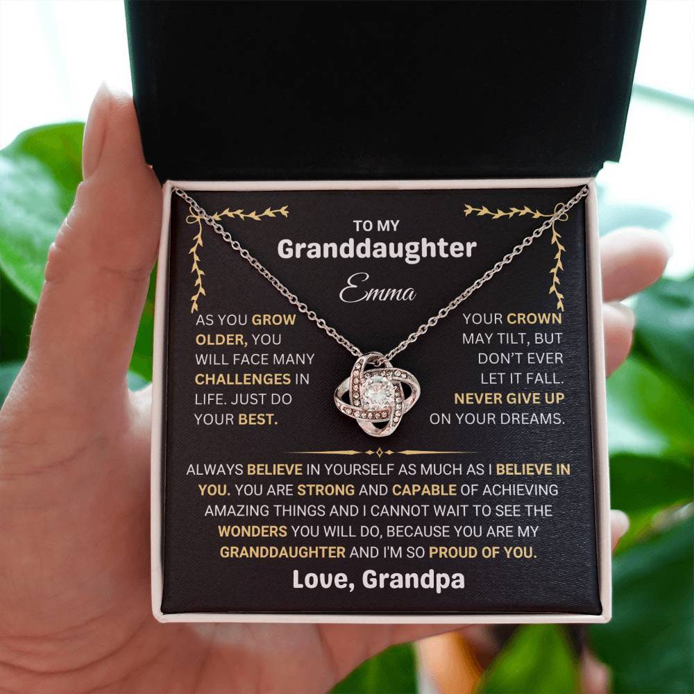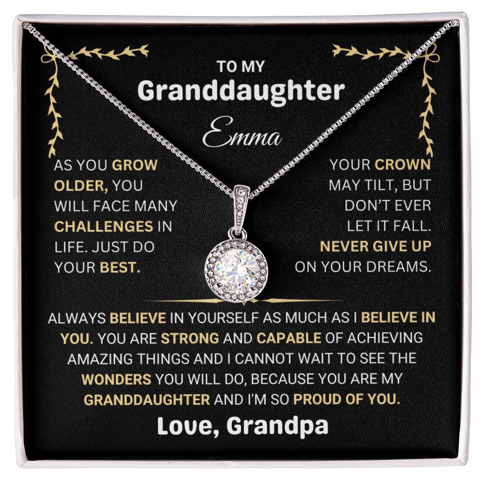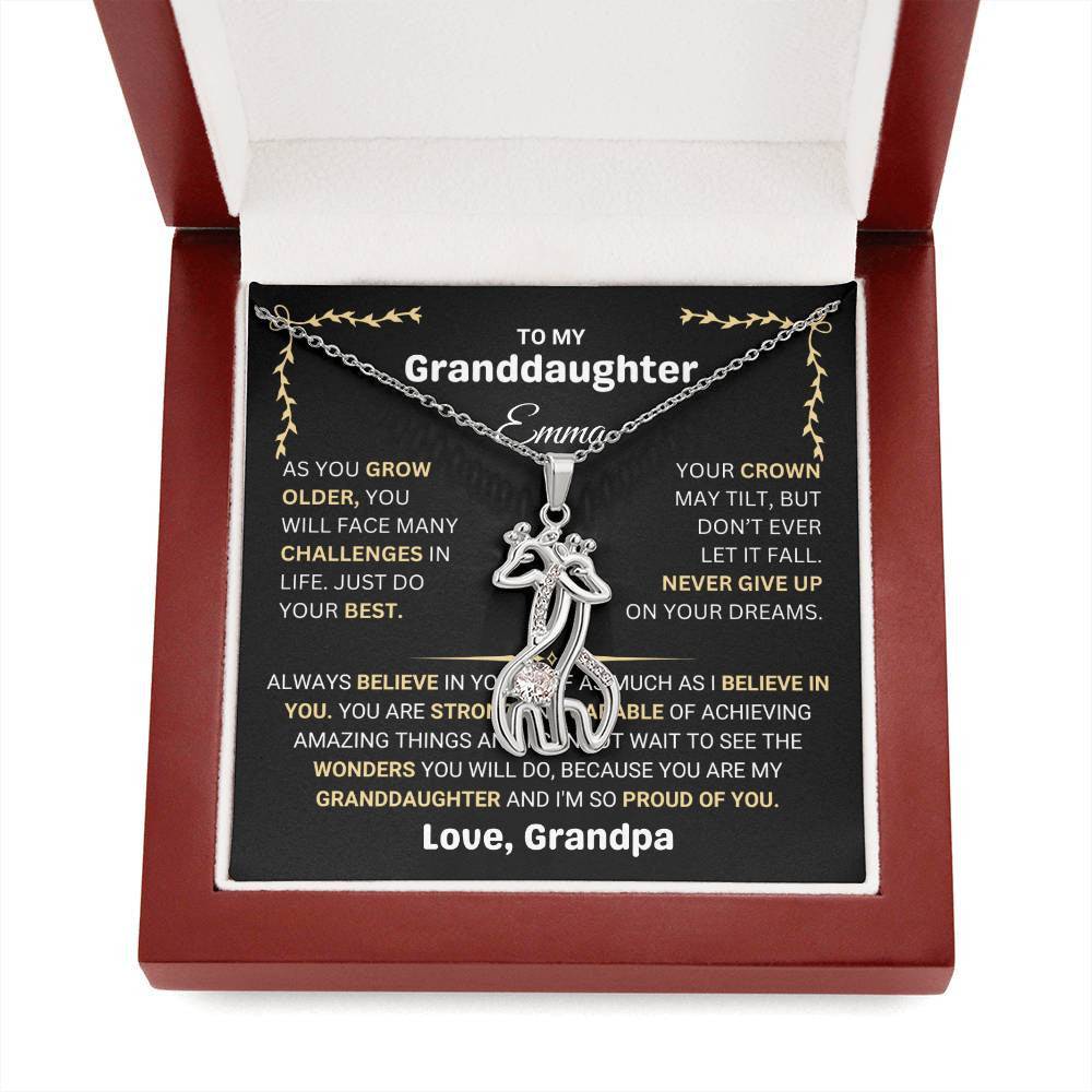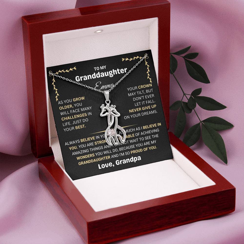 The pendant represents the challenges and successes she will face in life, with a message of belief and pride from her grandparent. Whether it’s for her birthday, graduation, or a special moment, this necklace will serve as a cherished keepsake and a reminder that she is loved and supported. Personalized with her name and your special message, this necklace will stay close to her heart, no matter where life takes her.