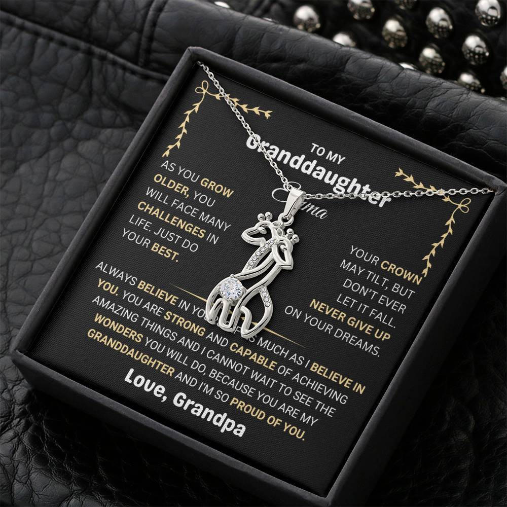 Remind your granddaughter of her strength, resilience, and potential with our Granddaughter Necklace. Designed as a personalized token of love and encouragement, this necklace is a beautiful reminder for her to always keep her crown straight and never give up on her dreams.
