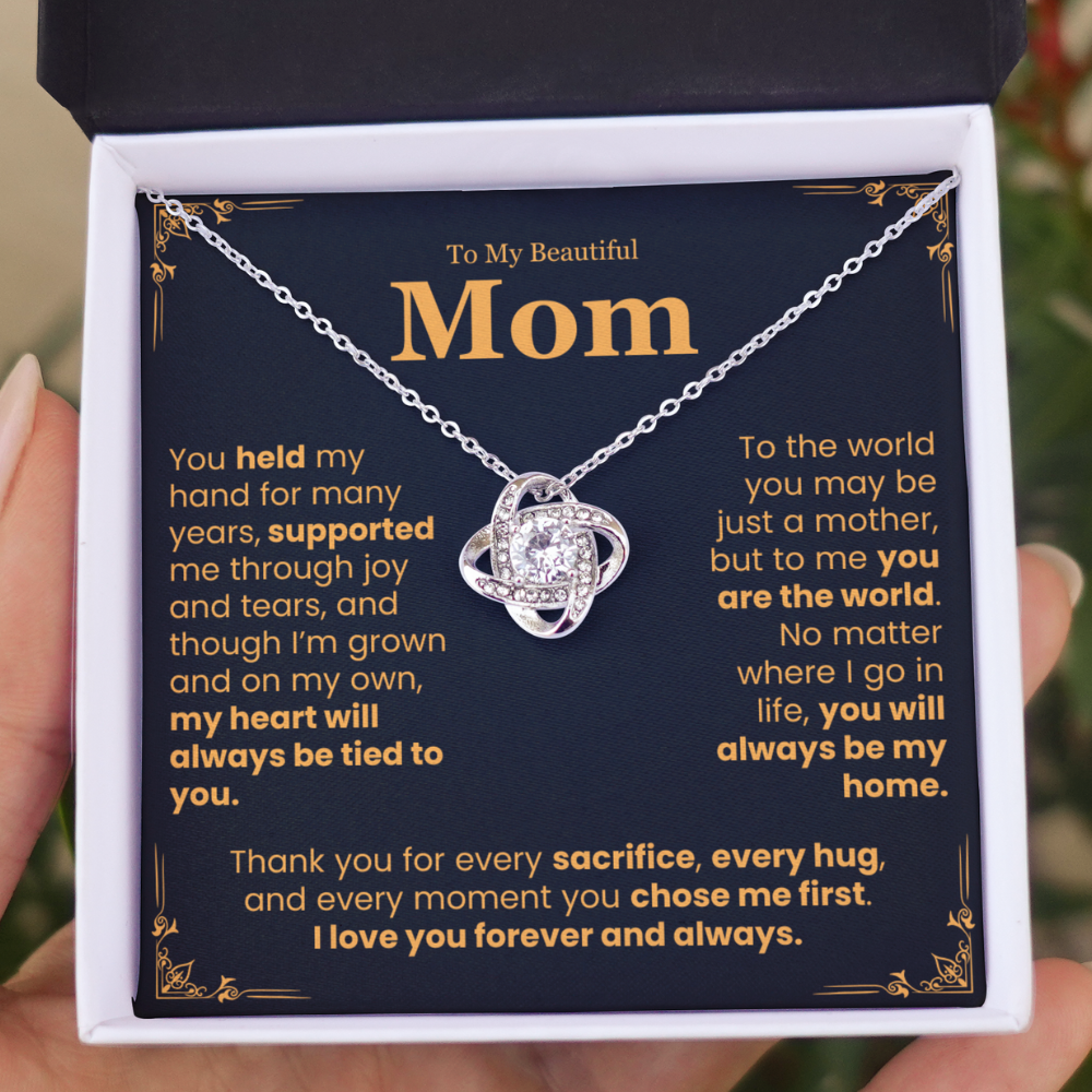 This Mother's Day, honor the woman who gave you everything. This stunning necklace, paired with a heartfelt message, is a lasting reminder of her endless love, strength, and sacrifices. Because no matter how far life takes you, your heart will always be tied to hers.