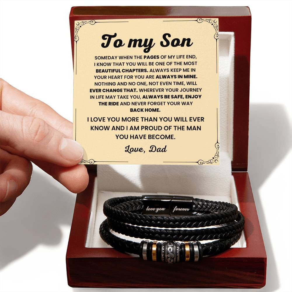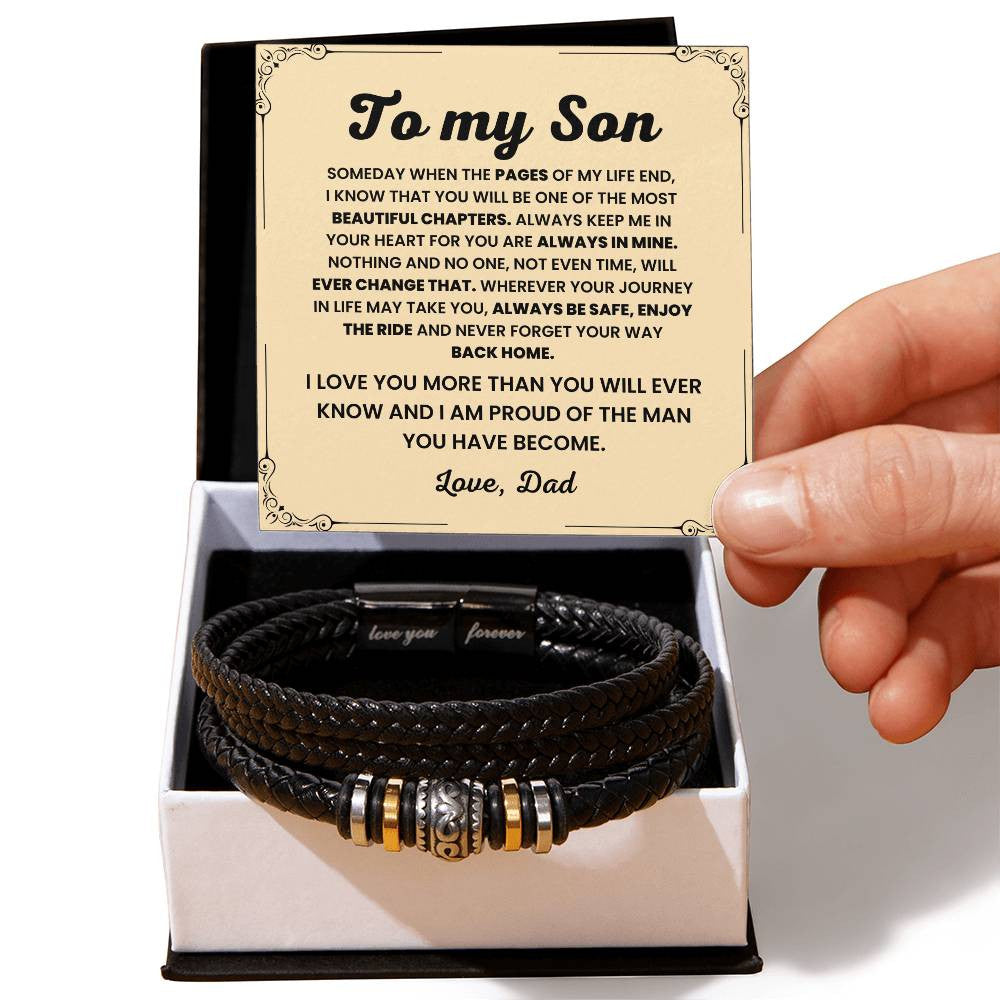 Show your son how proud you are of the man he’s become with the Son Bracelet, a heartfelt gift that symbolizes your everlasting love and guidance. With a touching message from Dad, this bracelet serves as a daily reminder that no matter where life’s journey takes him, he will always have a place in your heart and your unwavering support.