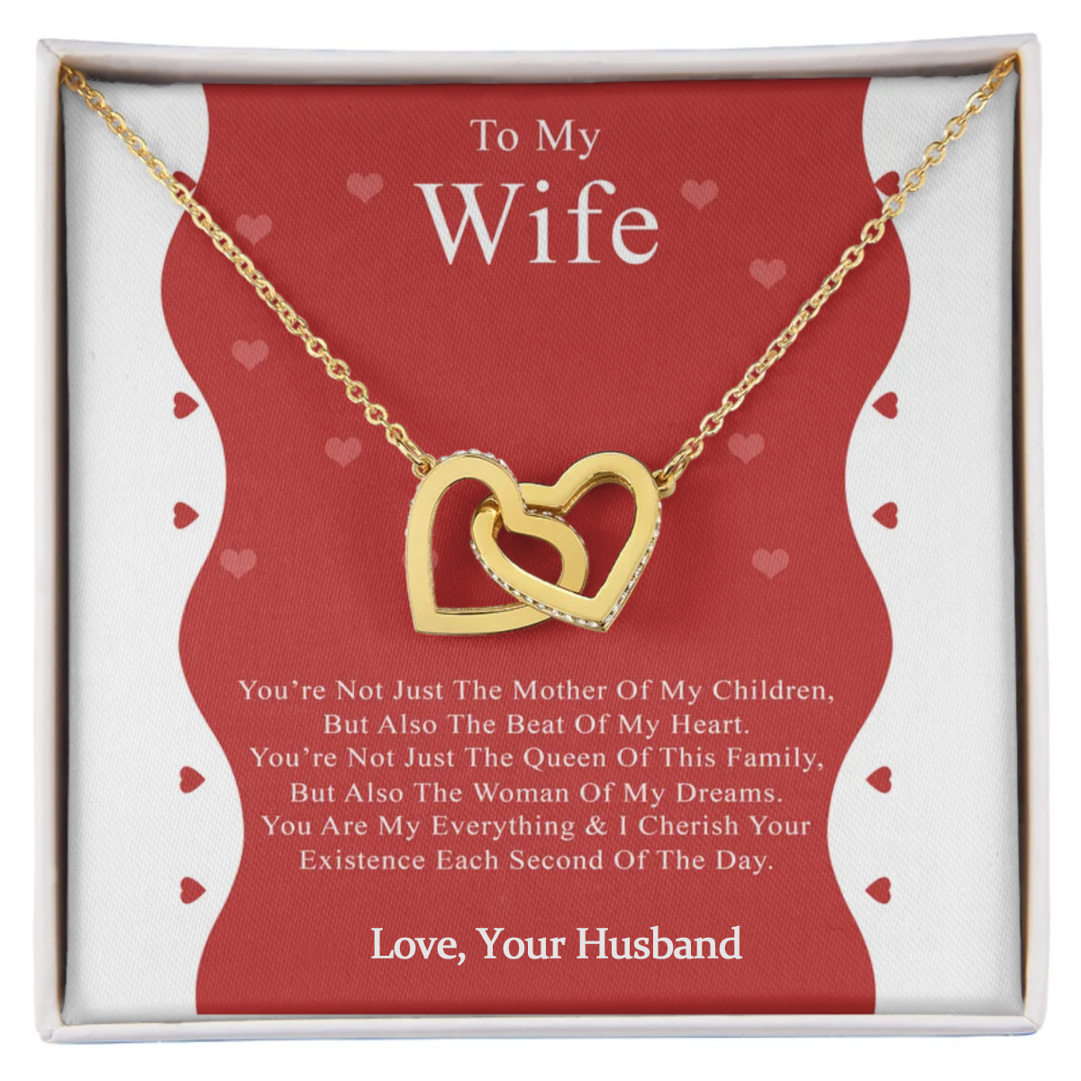 Give her the gift that symbolizes your never-ending love. Featuring two lovely hearts embellished with cubic zirconia crystals, this Interlocking Hearts necklace is the perfect accessory for everyday wear. Whether it's a memorable anniversary or a special birthday, make sure to dazzle your special someone by gifting them this stunning necklace.Two heart pendants embellished with CZ crystalsHigh quality polished surgical steel and rose gold finish or 18k yellow gold finishPendant dimensions: 0.6" (1.5cm) height / 1.1" (2.8cm) widthAdjustable length: 18" - 22" (45.72 cm - 55.88 cm)Lobster claspYour piece is lovingly packaged in a complimentary soft touch box for easy gifting. Elevate your presentation by upgrading to the mahogany style luxury box, which features a brilliant LED spotlight.